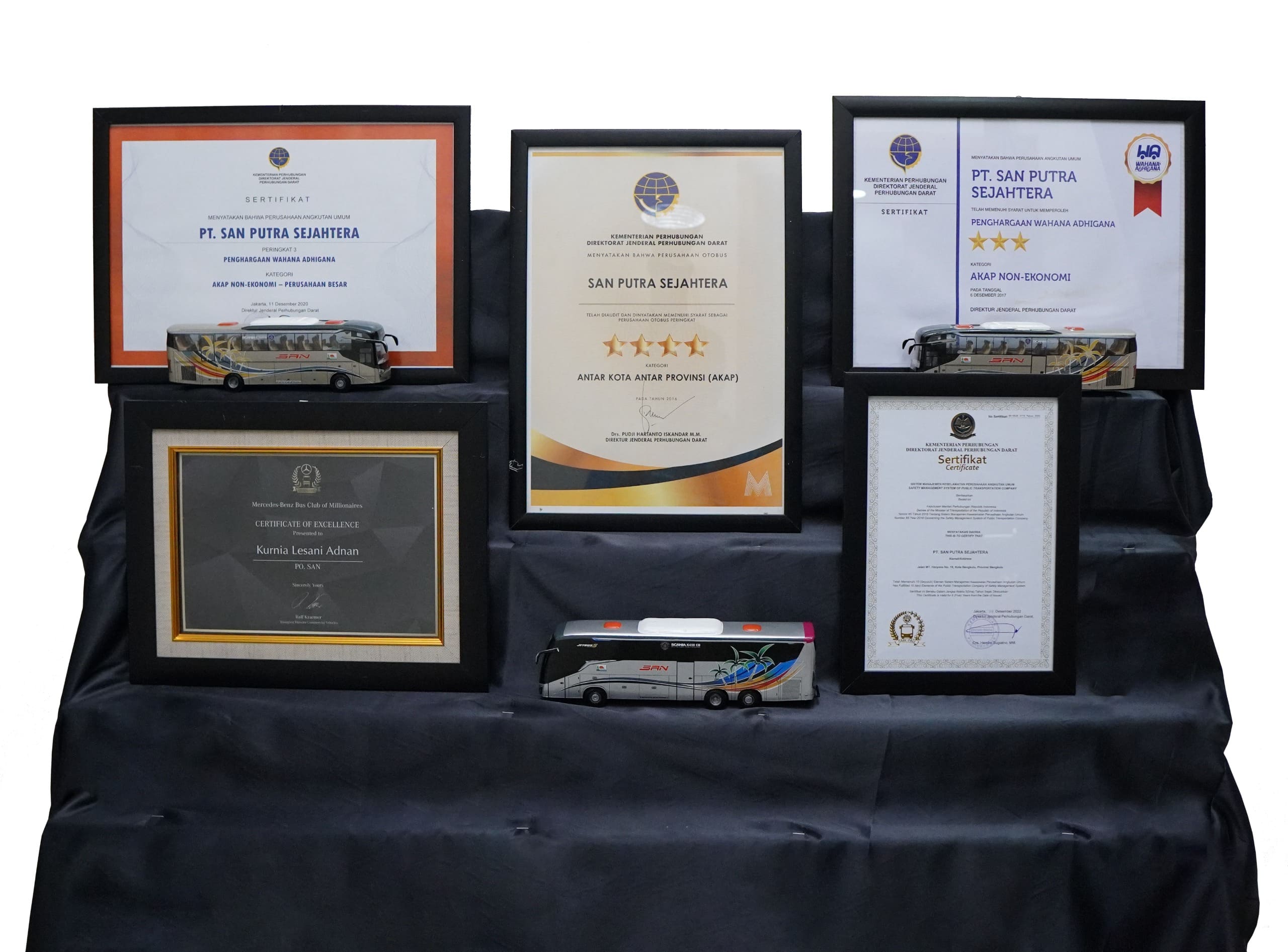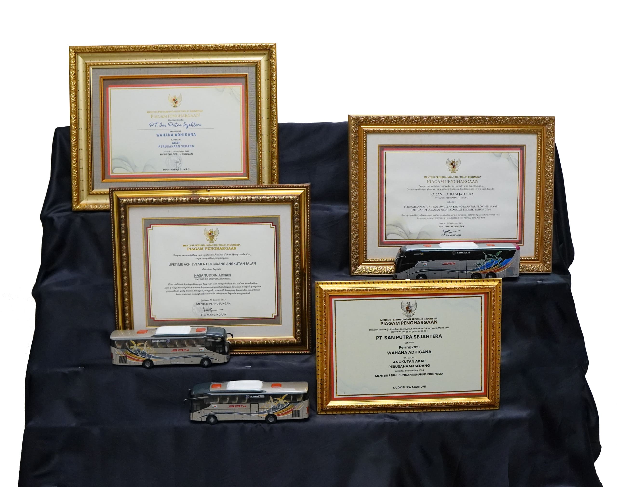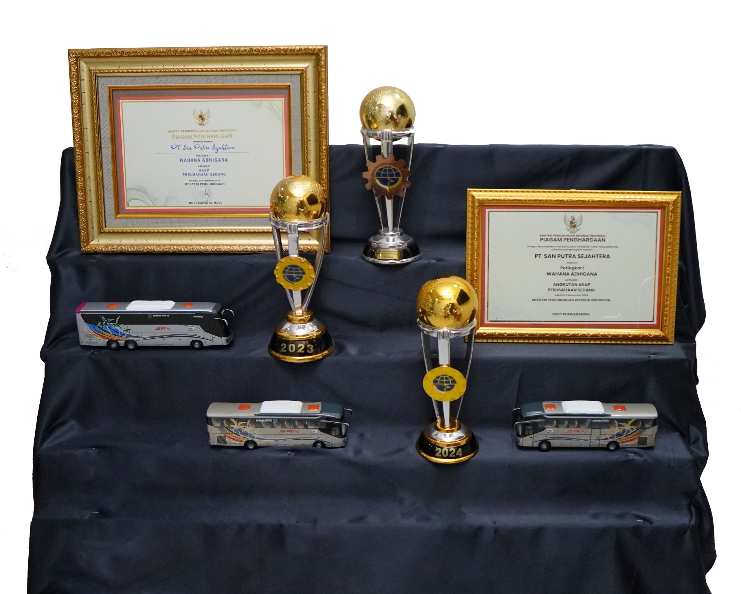 - Penghargaan Wahana Adhigana Kategori AKAP Perusahaan Sedang oleh Jenderal Perhubungan Darat tahun 2024.